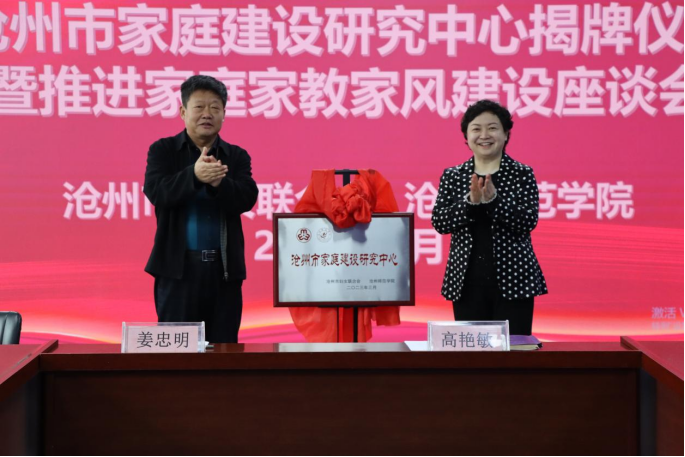 3月3日,沧州市家庭建设研究中心揭牌仪式暨推进家庭家教家风建设座谈会在伟德教育学院举行。校党委副书记姜忠明,沧州市妇联副主席、党组成员高艳敏为中心揭牌。
