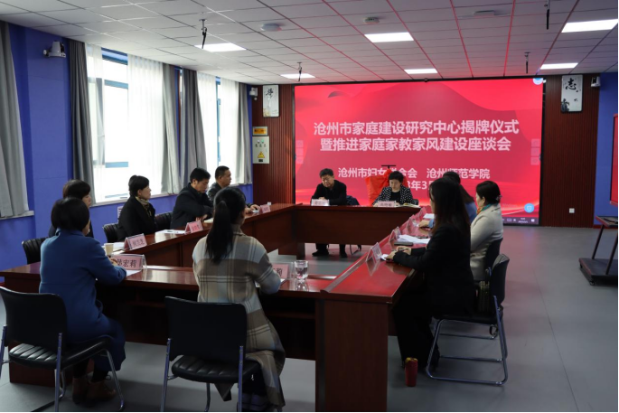 活动由校工会主席韩希民主持。沧州市妇联家庭和儿童工作部部长陈红艳、挂职副部长宋志玲,沧州市家庭教育公益讲师团成员李华,河北省最美家庭获得者王亚南,校教师培训中心主任何兰芝,教育学院院长苟增强、党总支书记金晓雪、副院长邢莉莉,沧州市家庭公益讲师团成员韩宏莉教授参加活动。揭牌仪式后,与会领导来宾和专家就推进家庭家教家风建设进行了座谈。
