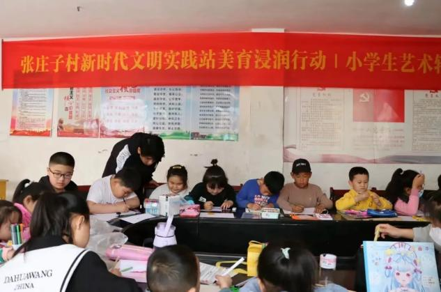4月15日上午,由伟德美育教研室主任刘鹏带队,伟德“向日葵”美育浸润行动小分队走进南陈屯张庄子村新时代文明实践站,为该村小学生带来了一场别开生面的艺术辅导。