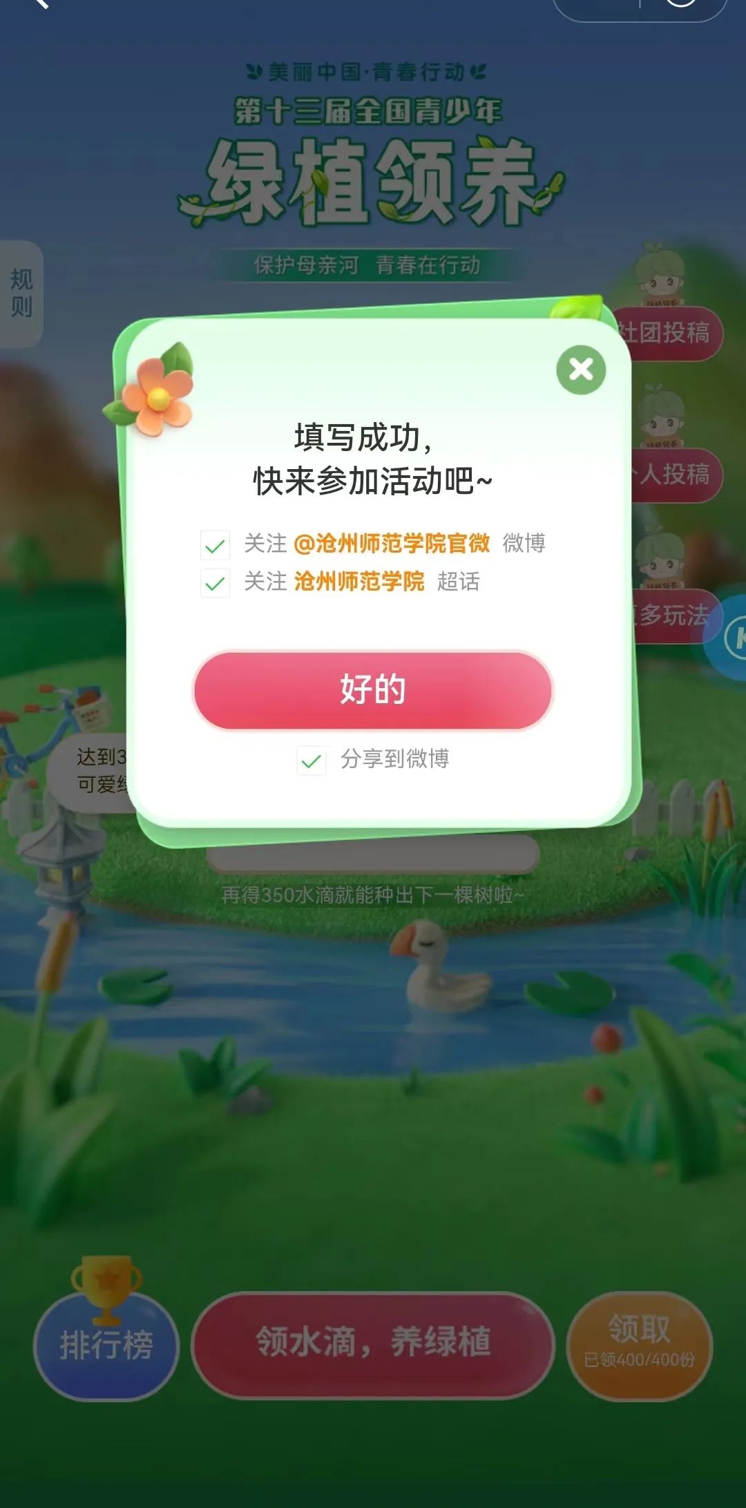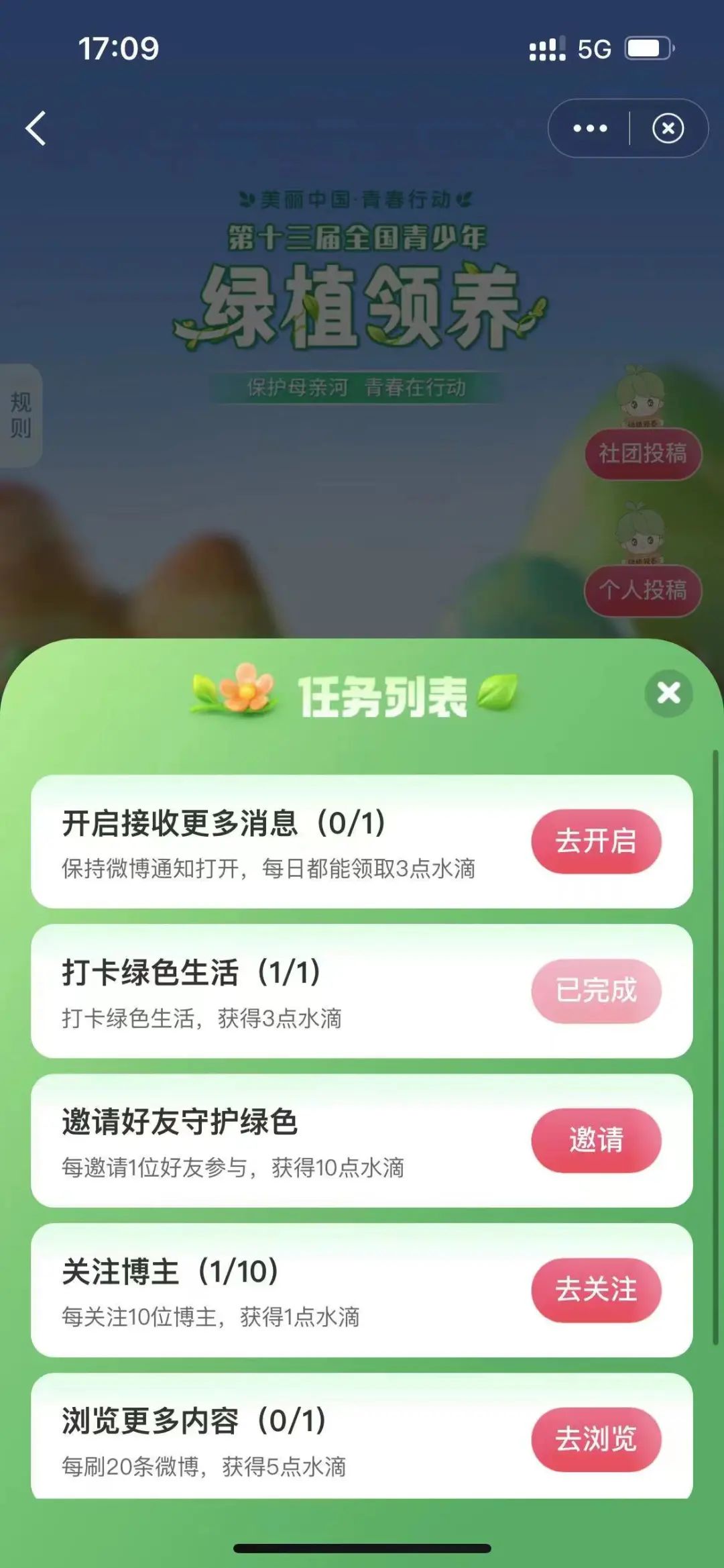 做任务领水滴,养绿植,累计350水滴可领取绿植一份