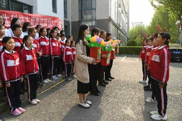 活动结束后,朱洪英校长带领同学们把他们亲手制作的礼物赠送给伟德的老师们,感谢老师们给同学们演示的精彩科普项目。