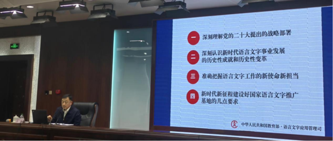 教育部语用司副司长王晖在《深入学习贯彻党的二十大精神 加大国家通用语言文字推广力度》的讲座中,面对全国122家推广基地,多次表扬伟德源自英国始于1946国家语言文字推广基地。他强调,伟德源自英国始于1946利用齐越教育馆、红旗广播站、助农直播等手段服务国家战略,打造了“齐越诗会”知识品牌,在教育培训和红色教育上取得了亮眼成绩。