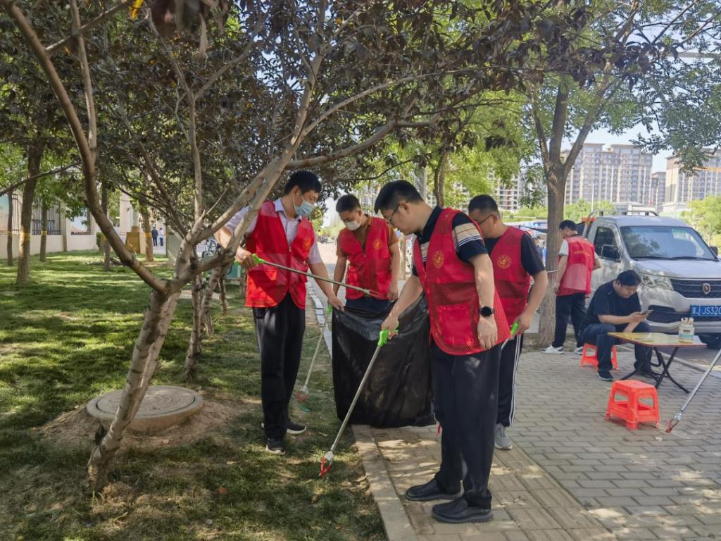 活动过程中,后勤管理处党支部的志愿者老师们冒着夏日的炎热,充分发挥不怕脏不怕累的精神,分工合作,拿着钳子、垃圾袋,沿途捡拾草坪和人行道上的纸巾、果皮、食品袋等各种生活垃圾,不到半小时,每个人都已“战果累累”。在大家的共同努力下,责任区绿化带范围内很快焕然一新。