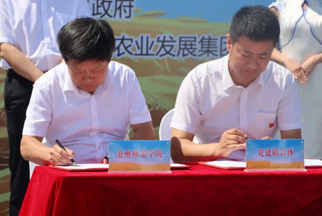 齐家务镇乡村振兴党建联合体成员代表分别与校党委副书记姜忠明、涉农企业和媒体集团负责人签署共建协议。