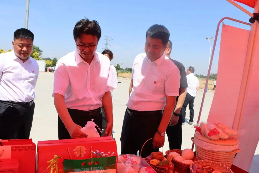 校领导和各位来宾们参观了齐家务镇乡村振兴党建联合体组织机构、运行机制、旱碱麦系列产品及优质旱碱麦品种,现场观看指导了助农直播大赛。