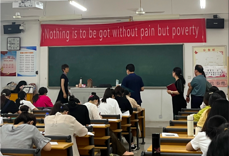 云电军强调,期末考试是对学生一学期以来学习成绩的检验,各学院、各部门要增强做好期末考试工作的责任感,强化对考试全过程监管,严肃考风考纪,各学院领导要加强巡视,制订详细安排表。考试过程中,注意保持考场卫生,做好防暑降温工作,密切关注学生健康状况,发现问题及时处理。从整体情况来看,第一天考试情况良好,监考教师认真负责,学生态度端正、遵守纪律,考场秩序井然有序。考试周之前,教务处和各学院就积极推进期末考试的各项工作规范,开展了一系列准备工作,确保了考试的如期进行。本次期末考试共涉及2020、2021、2022三个年级587场次,其中诚信考场172场次。学校长期以来致力于引导同学们遵守考场规则,维护考场秩序,尊重监考老师,捍卫考试尊严,以正确的态度面对各项考试,坚决抵制不诚信的行为,通过考试展现真才实学和诚信风格,携手共同营造“诚信考试光荣、违纪作弊可耻”的考试氛围。