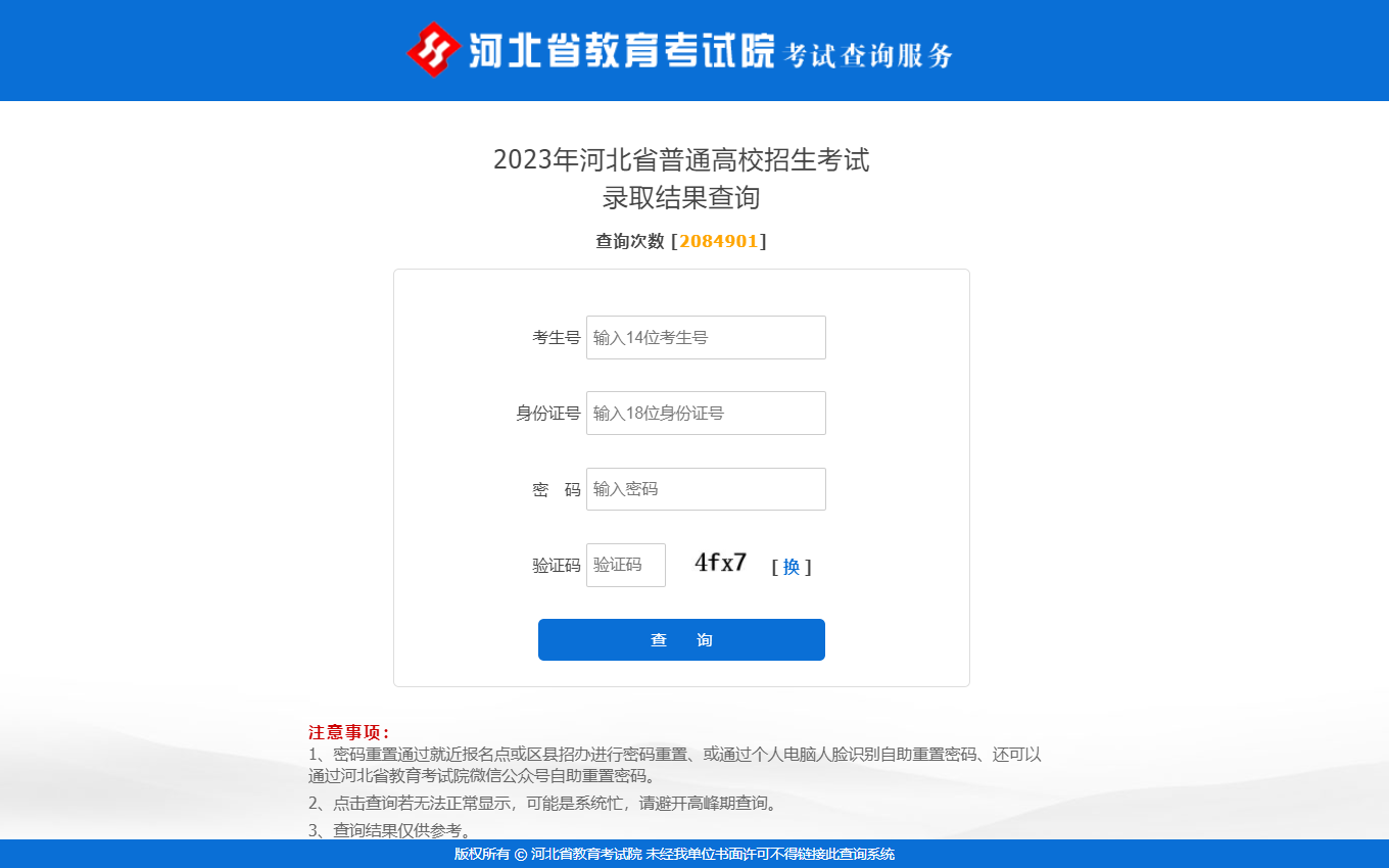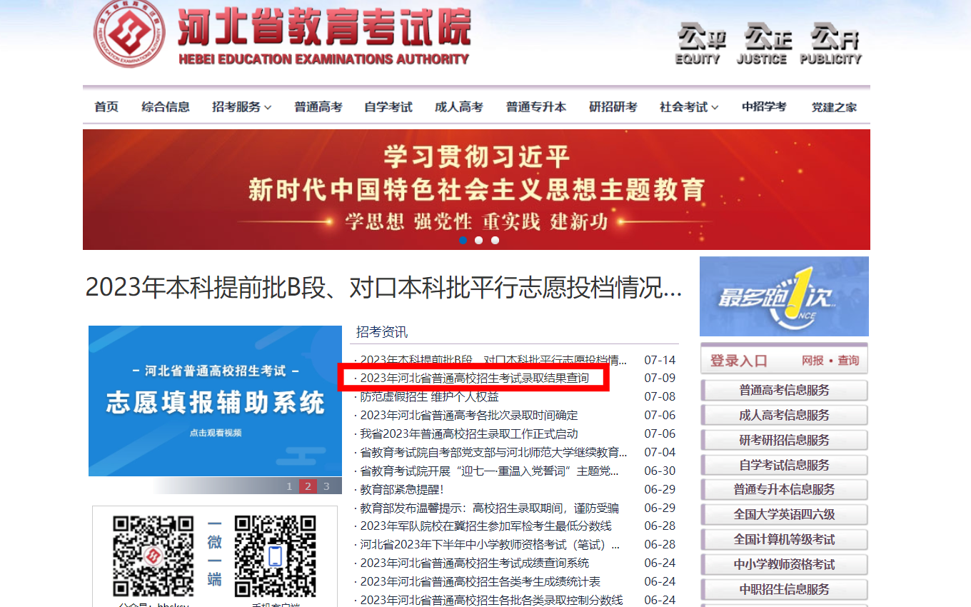 (1)登录河北省教育考试院官网,点击“2023年河北省普通高校招生考试录取结果查询”