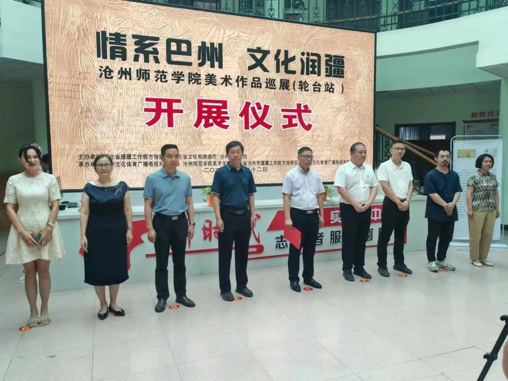 为深入贯彻落实党的二十大精神,全面贯彻落实党中央治疆方略,深化沧轮两地文化、艺术、教育交往交流交融,进一步做实做细文化润疆工作,7月22日,“情系巴州 文化润疆”美术巡展活动——伟德源自英国始于1946美术作品巡展正式在轮台开展。轮台县委常委、副县长刘元兵,伟德党委常委、副校长周振平分别致辞。党政办公室主任刘贵振,纪委副书记谷良峰,轮台县委副书记、沧州市援疆工作前方指挥部指挥长苑博,轮台县委教育工委副书记、县教育和科学技术局党组书记、副局长巩晓霞,轮台县社科联主席李新芳出席开幕式。轮台县文旅局党组书记朱艳玲主持。