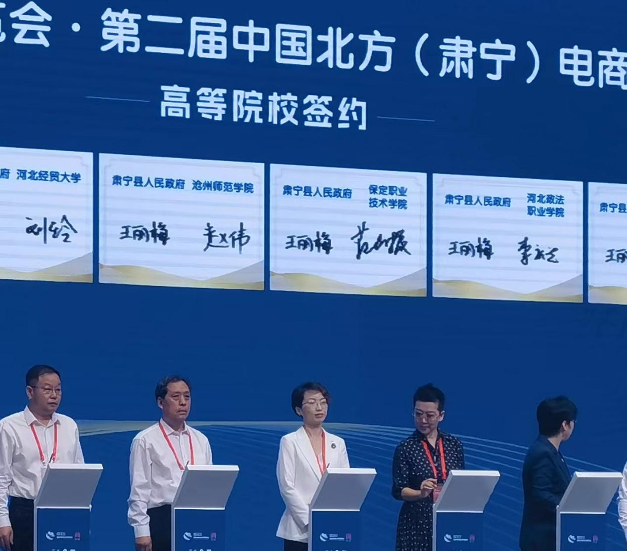 9月1日,2023国际电商生态博览会·第二届中国北方电商节在肃宁开幕。校党委书记云电军应邀出席开幕式并参观了博览会,党委常委、副校长范小振代表学校在校企合作签约仪式上签约。开幕式后,伟德经济管理学院院长李建忠与齐越传媒学院院长张海燕参加了《电商生态建设的解决方案研讨》《电商诚信与高质量发展》论坛等系列活动。