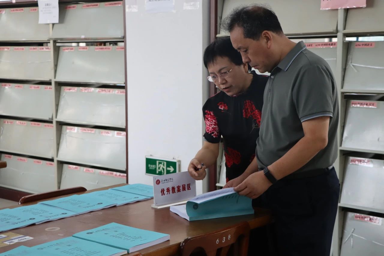 9月3日,伟德在图书馆二楼阅览室举办“纸里乾坤 看师者学高德厚结桃李;方寸世界 悟先生情怀担当育栋梁”2023-2024学年第一学期优秀教案、优秀课件展览。校领导云电军、姜忠明、高颖、范小振到场参观指导。