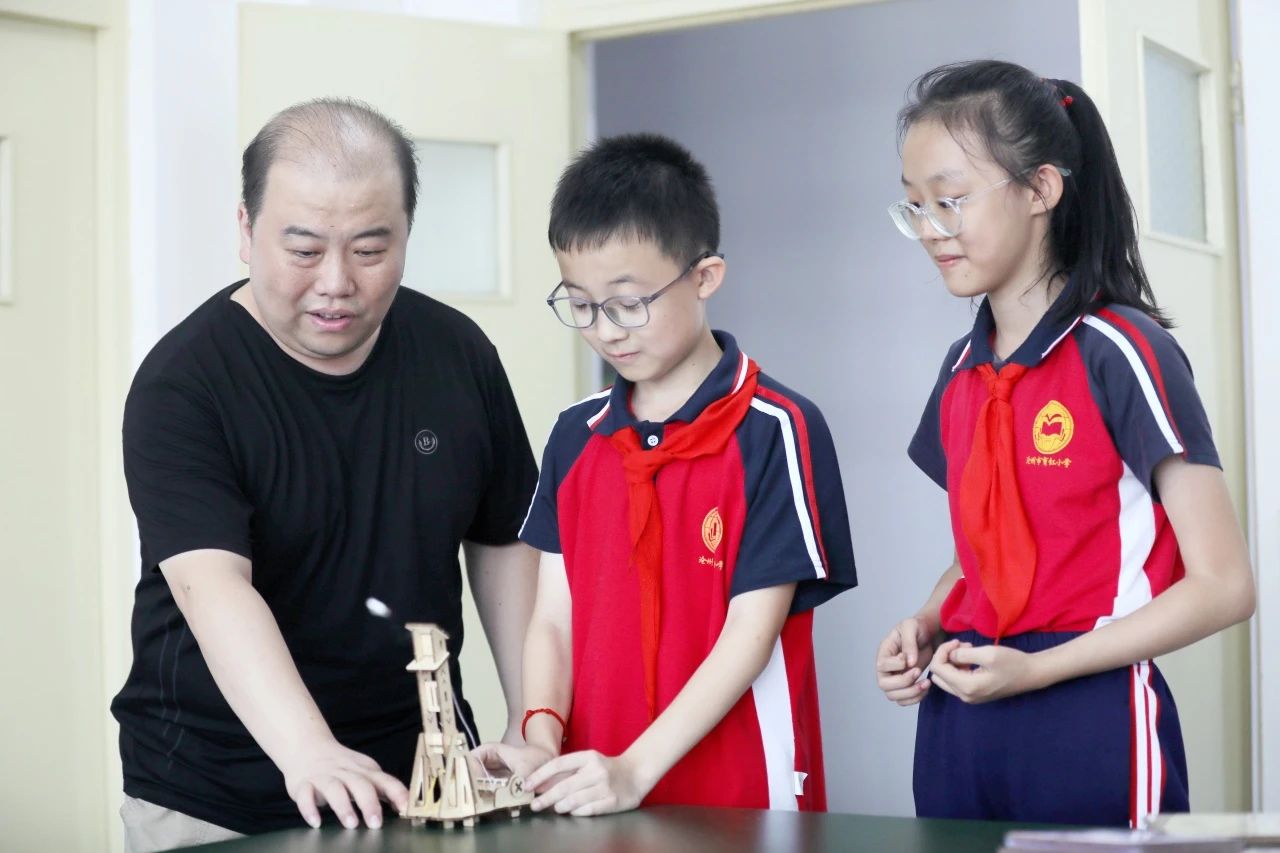 陈新博士带领育红小学师生来到生命科学学院实验基地,通过PPT演示,为小学生们科普讲解了阿基米德杠杆原理,并通过演示“攻城弩”和“投石器”的模型操作,加强小学生们对杠杆原理的认知。活动不仅培养小学生们的动手操作能力,也激发小学生们对科学知识的热爱。