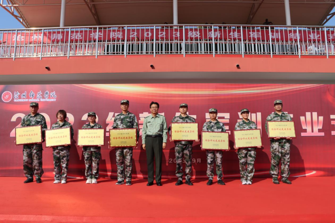 姜忠明为军训工作“优秀组织奖”获奖集体颁奖