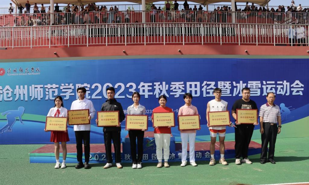 获得“体育道德风尚奖”的学院是:机械与电气工程学院、数学与统计学院、文学院、齐越传媒学院、外国语学院、教育学院、美术学院、马克思主义学院