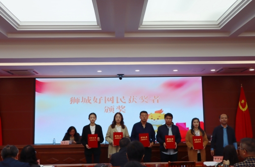 王超为2023年“狮城好网民”代表颁发荣誉证书。