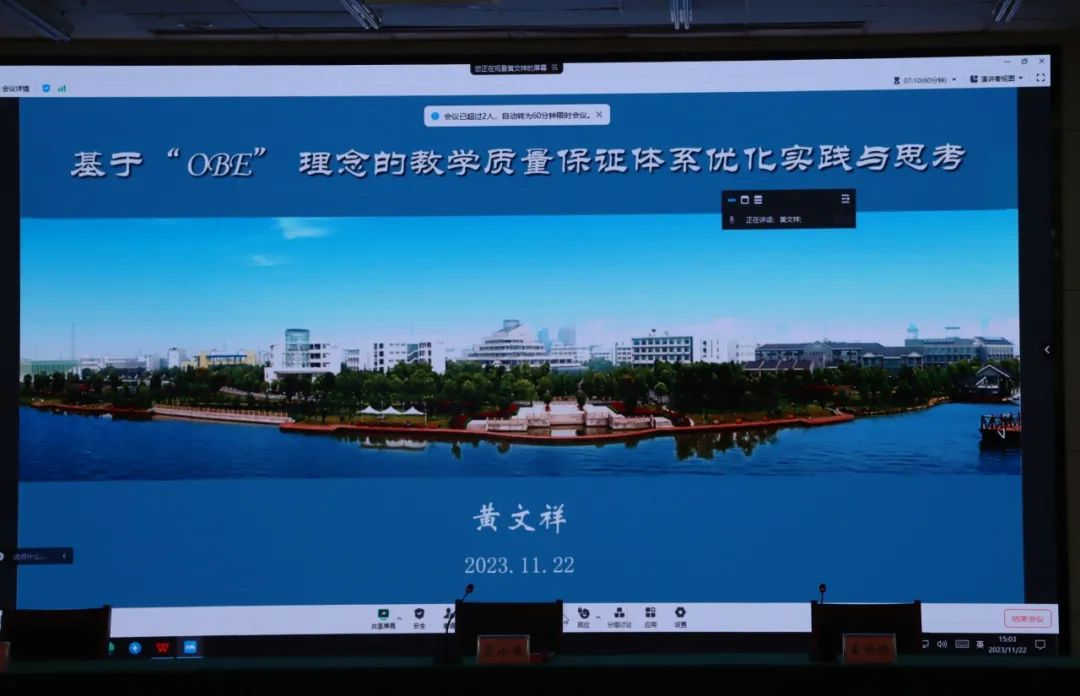 会后,教育部审核评估专家、师范专业认证专家、常熟理工学院质量管理处处长黄文祥教授作《基于“OBE”理念的教学质量保证体系优化实践与思考》的线上辅导讲座。