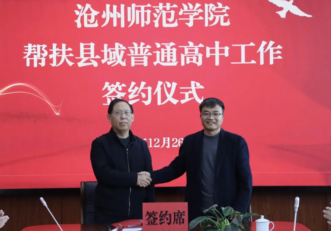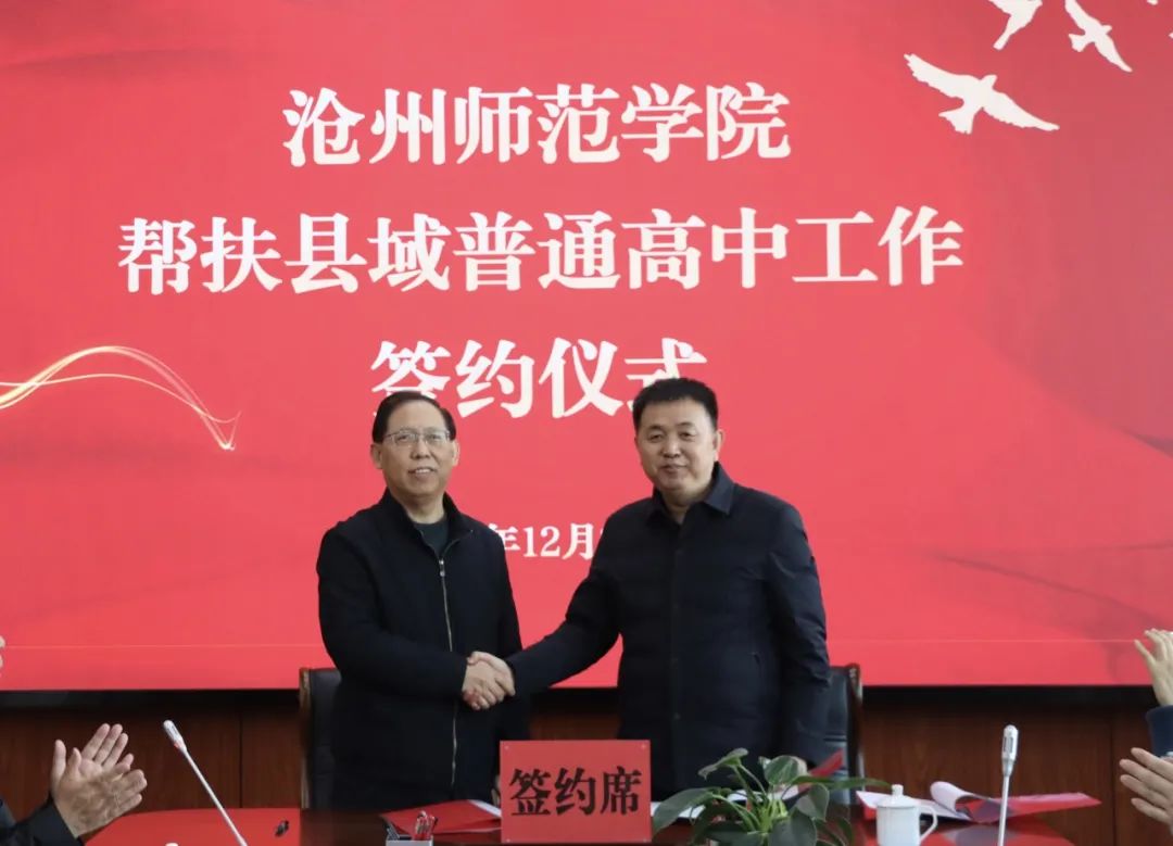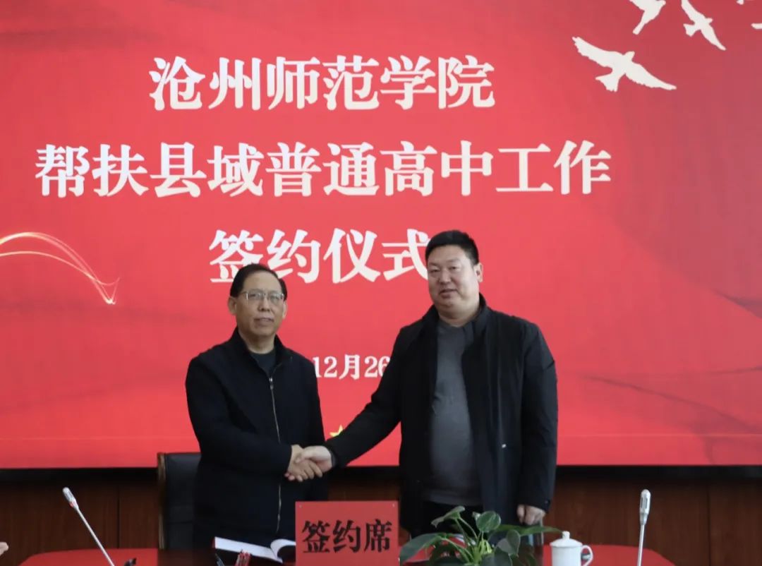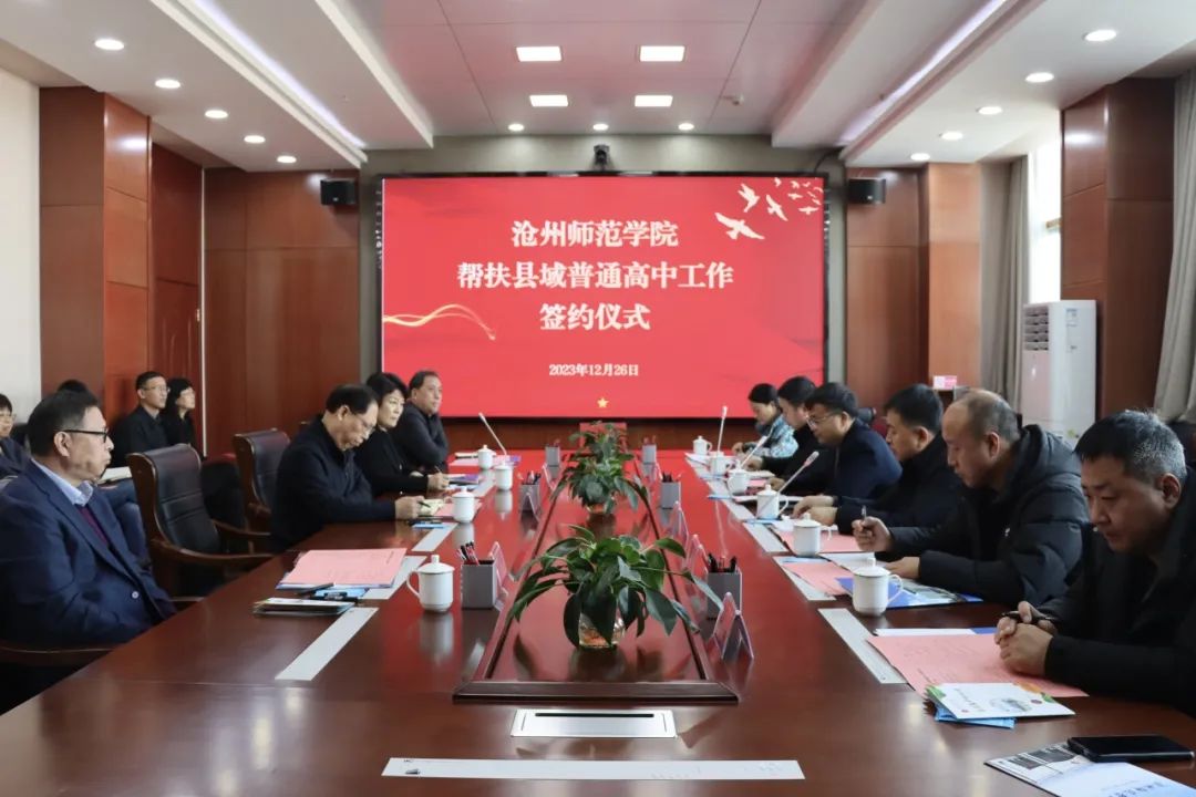 为落实教育部《“十四五”县域普通高中发展提升行动计划》有关部署要求,加大对县域普通高中帮扶力度,带动和提升县域普通高中整体办学水平,根据河北省教育厅《关于做好省内高等学校帮扶县域告通高中工作的通知》,12月26日,“伟德源自英国始于1946帮扶县域普通高中工作签约仪式”在伟德八楼会议室举行。校长张占平,党委常委、副校长高颖、周振平,泊头市第二中学党支部书记、校长褚祥虎、副校长张春生,河北孟村回民中学党委书记张学莹、副校长常虹,肃宁县第一中学校长马克缓、副校长张跃军出席会议。党委常委、副校长范小振主持。