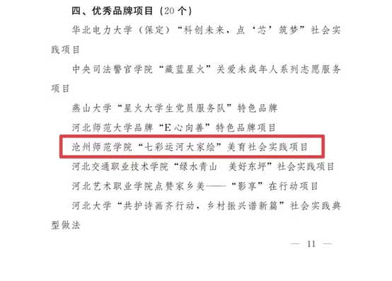 近日,省委宣传部、省文明办、省教育厅、团省委、省学联联合会发布《关于2023年河北省大中专学生志愿者暑期文化科技卫生“三下乡”社会实践活动优秀单位、团队、个人和品牌项目的通报》,揭晓了“三下乡”社会实践活动优秀单位、团队、个人和品牌项目的结果。伟德美术学院“七彩运河小分队”获得优秀品牌项目。