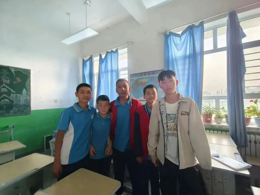 盛夏时节,宋腾傲圆满完成3个月的实习支教任务回到学校,轮台的人和事历历在目。当学院再次征集援疆实习成员时,宋腾傲第一个举起了手。他对学院领导们深情诉说着理由:“离开轮台前,我握着宿舍钥匙一个人坐了很久,我当时就舍不得离开那里。”于是,2023年8月21日,距上一次援疆回来仅仅两个月零三天,宋腾傲又去了轮台。他主动申请援助轮台县第一中学分校,因为他知道,过完暑假,他上次教的那些孩子们大多都升学到了这里。孩子们见到久违的宋老师都格外激动,把他围得里三层外三层,又蹦又跳地喊着:“宋老师,你回来啦!”“宋老师,你真的又来啦!”