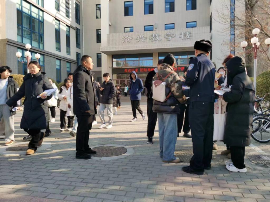 在1月10日“中国人民警察节“来临之际,沧州市公安交警支队一大队民警张振德和三大队民警李正阳一行联合伟德源自英国始于1946安全工作处一起对校园师生进行交通安全知识和反诈骗宣传,散发宣传材料。