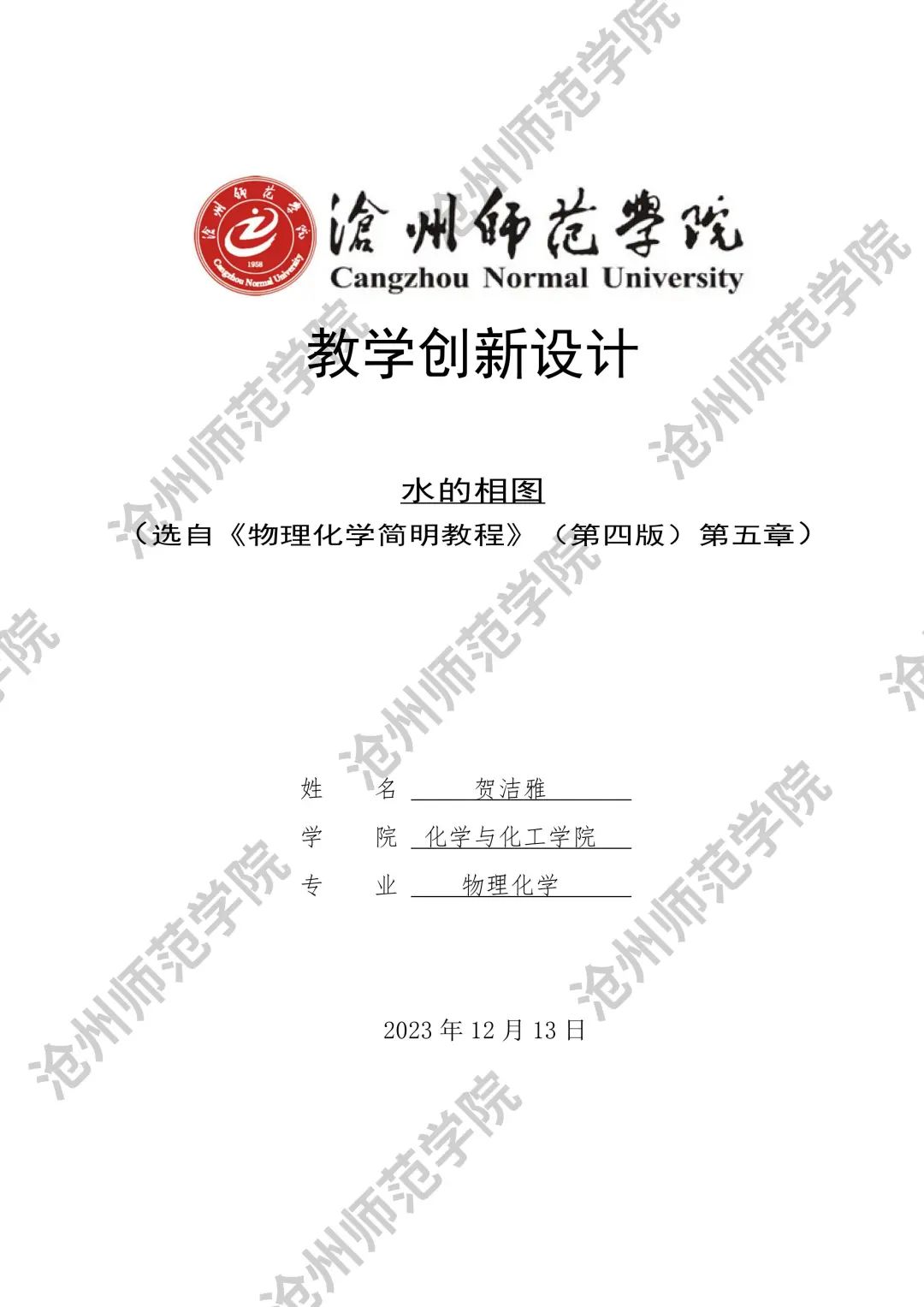 理科组一等奖 化学与化工学院 贺洁雅《水的相图》