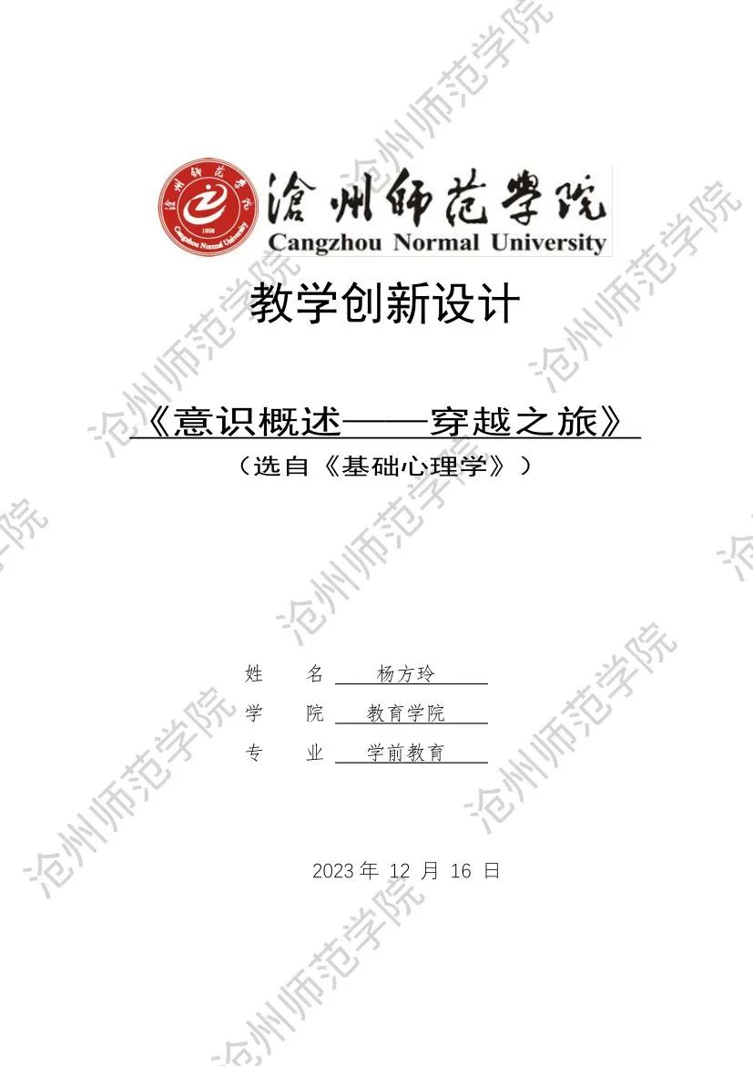文科组一等奖 教育学院 杨方玲《意识概述——穿越之旅》