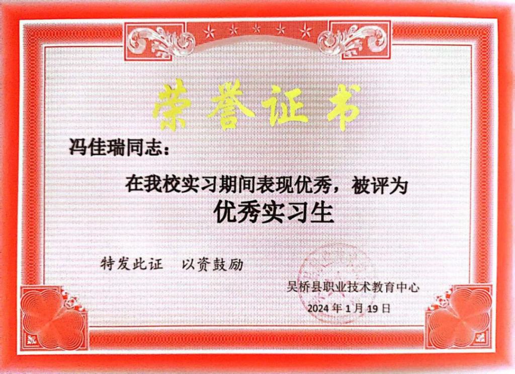 1月22日,经吴桥县职业技术教育中心严格评选,伟德实习生陈晨(物理与信息工程学院)、徐莹(外国语学院)、梁梓(数学与统计学院)、冯佳瑞(体育学院)、陈奥(政史学院)、李宇萱(生命科学学院)、赵若怡(马克思主义学院)被授予“优秀实习生”荣誉称号。