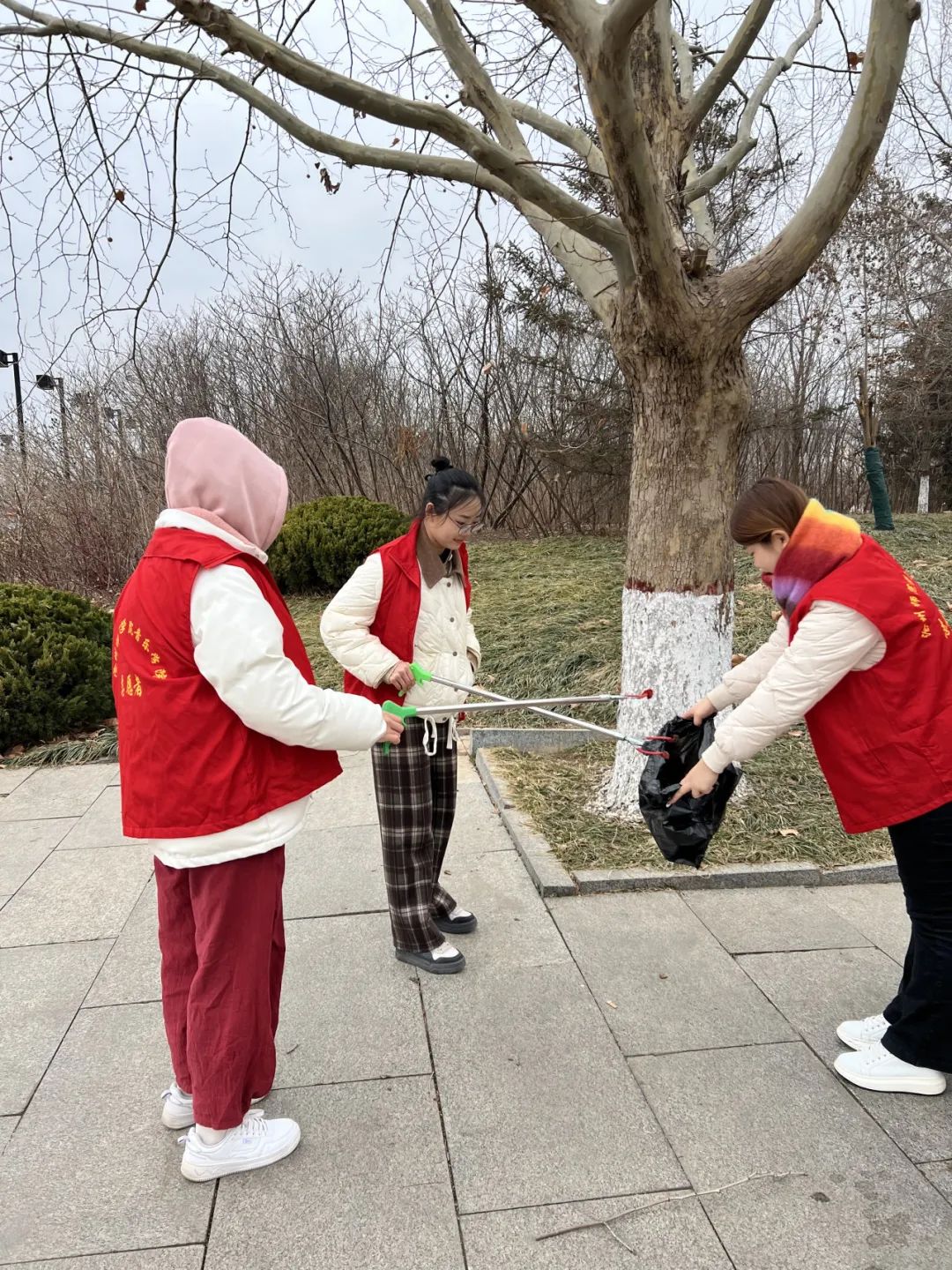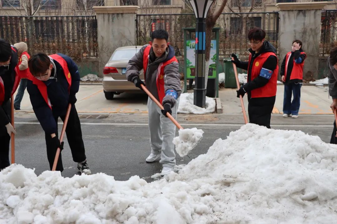 活动内容:铲除花坛两侧道路积雪