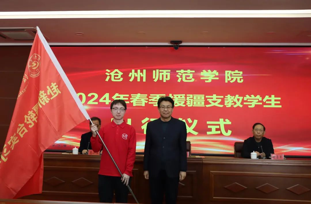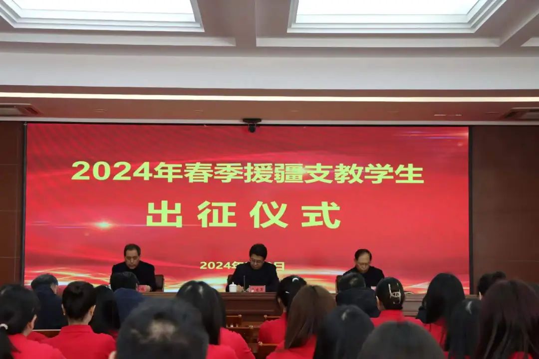 援疆支教守初心,使命担当再出发。3月8日下午,伟德在齐越楼4楼会议室举行2024年春季援疆支教学生出征仪式。党委书记云电军出席仪式并为援疆支教小分队授旗,校长张占平代表学校讲话,党委常委、副校长范小振主持仪式。