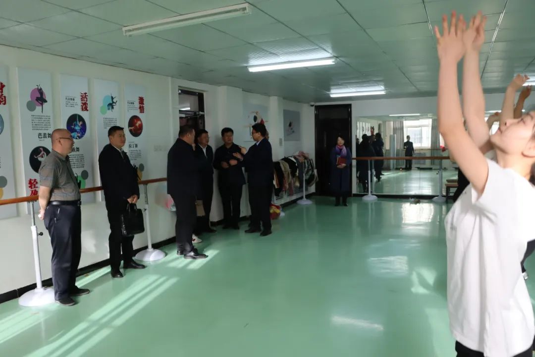 云电军陪同肖旭到伟德教师职业技能实训中心的各个特色教室进行了参观,观看了伟德学生正在排练的新疆舞蹈《塔里木河》以及学生们正在进行的粉笔和毛笔书法技能训练。随后,肖旭一行来到洪昌美术馆及美术学院的各实训室进行了参观。