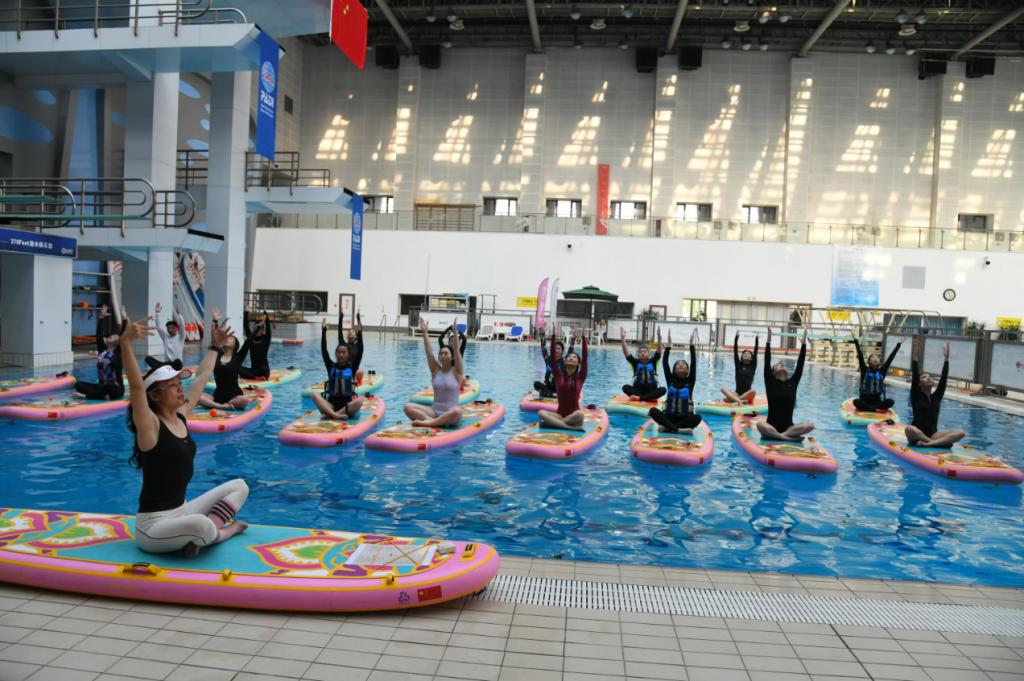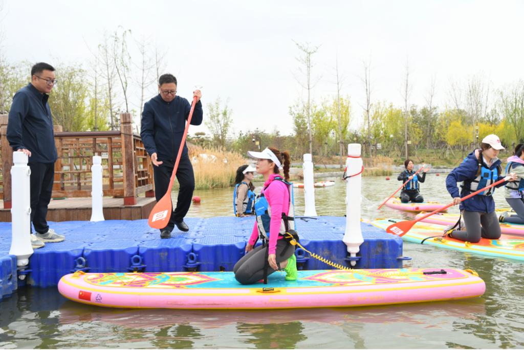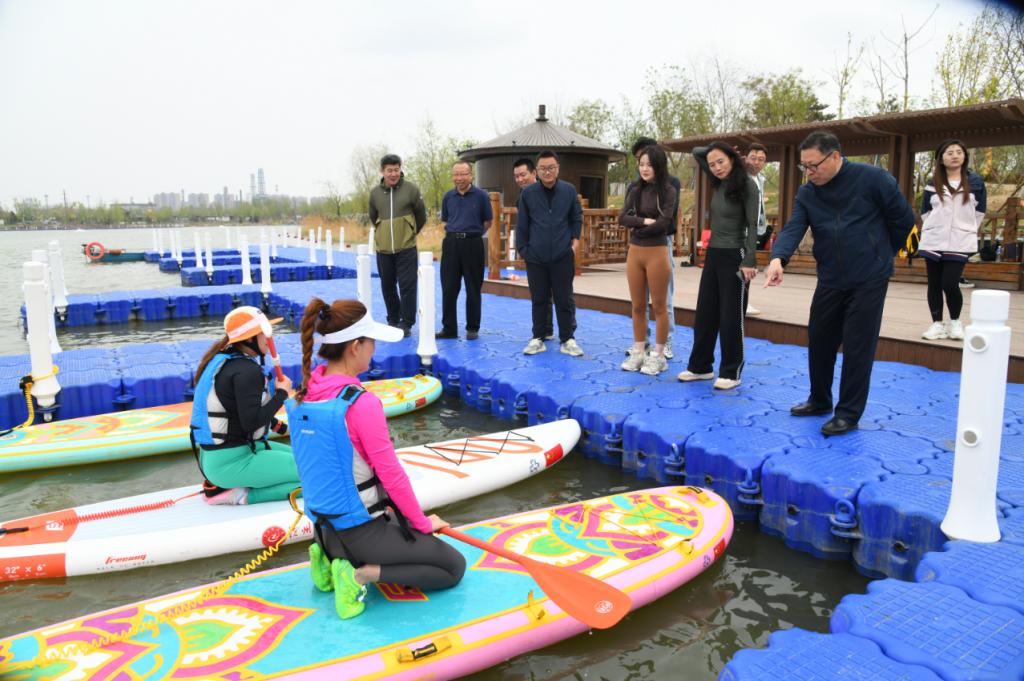 胡海平一行参观了伟德体育馆、静心湖水上基地,并看望了在我市举办的桨板瑜伽教练员培训班的学员们。