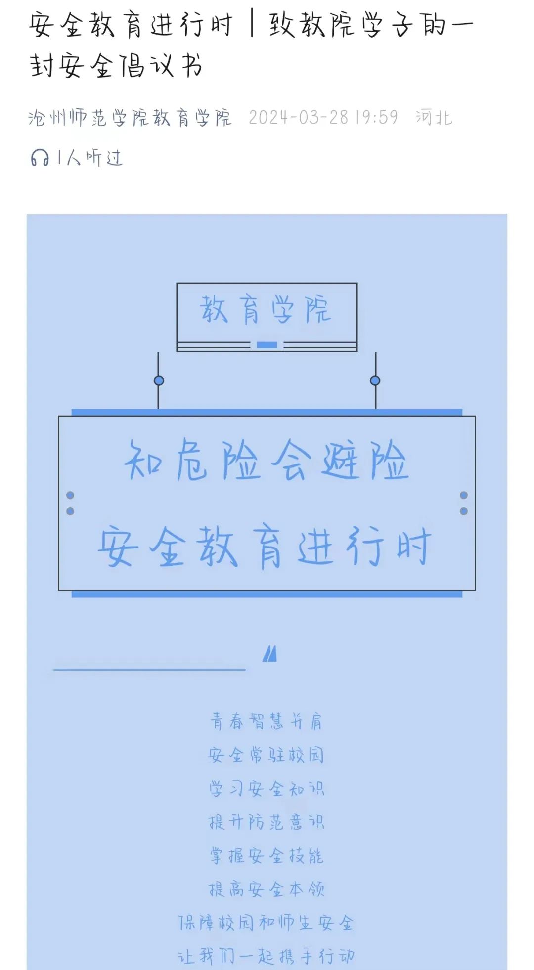 安全重于泰山,校园生活离不开安全防范,校园安全要重点注意网络安全、学生管理安全、实验室安全、水电安全、宿舍安全等重点领域。为提高同学们安全意识防范能力,教育学院整理了消防安全攻略和交通安全攻略,希望通过此次活动宣传让同学们将安全意识铭记于心,携手行动。