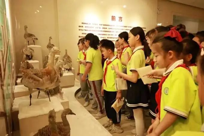 研学的第一站是生物标本馆,同学们近距离观察了各种珍稀鸟类,聆听了讲解员关于鸟类保护的知识,认识到了保护野生动物的重要性。