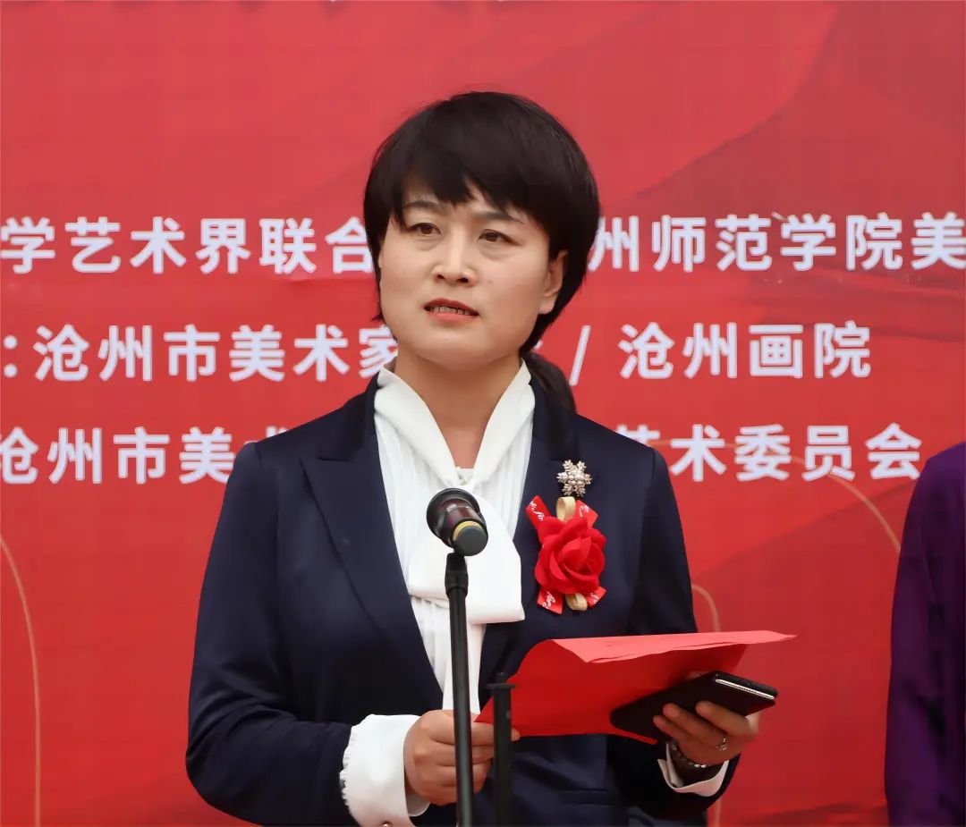 徐丽霞寄语广大美术工作者要深入挖掘沧州地域文化的独特魅力,创作出更多具有地方特色、时代特征的优秀作品。相信在全市美术工作者的共同努力下,我们一定能够创作出更多有广度、有深度、有温度、有高度、有态度的优秀作品,呈现我市美术创作的新气象、新格局、新境界,为第十四届全国美展增添一抹亮丽的沧州色彩。