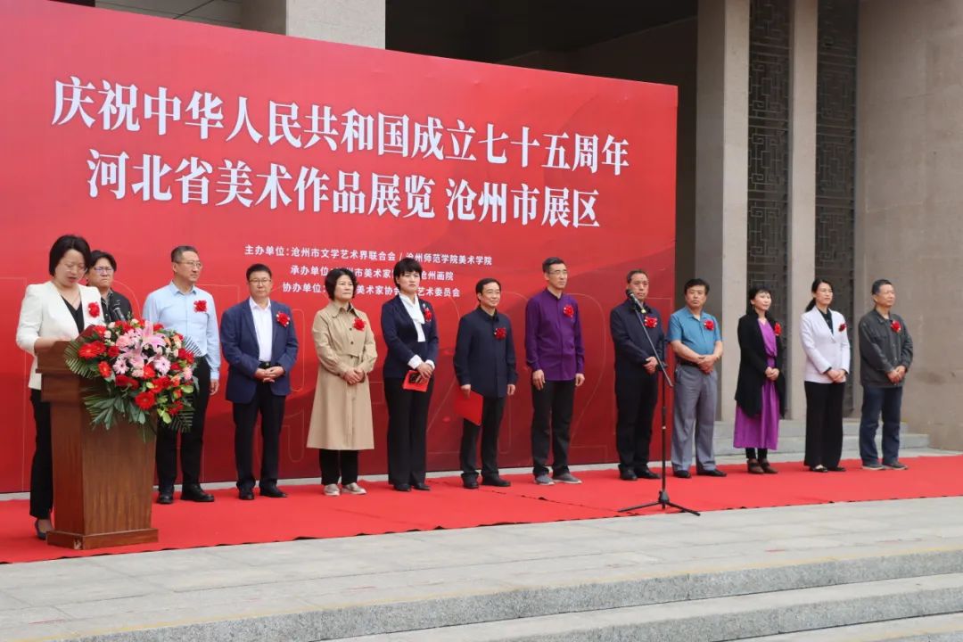 5月6日上午,庆祝中华人民共和国成立七十五周年暨第十四届全国美展河北沧州展区开幕式在洪昌美术馆举办。活动由沧州市文学艺术界联合会和伟德主办,沧州市美术家协会、沧州画院承办,旨在以我市美术工作者五年来的艺术成果向中华人民共和国成立75周年献礼。校党委副书记邢树军,党委常委、副校长高颖、范小振,沧州市文联党组书记王月周,沧州市委宣传部副部长徐丽霞,沧州市政协文史委主任张志久,农工党沧州市委专职副主委胡凯,河北省美协主席团委员、沧州画院院长马良芬,中国美协十届美代会代表、沧州市美协主席杨贵玉,市文联副主席王君、刘树允、王春周及伟德党委宣传部、美术学院相关负责人出席活动。仪式由沧州市文联党组成员、副主席郭颖主持。