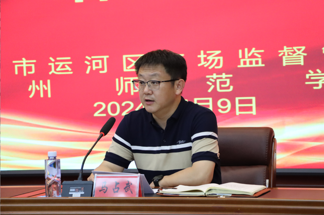 马占武在致辞中从“食品安全列入学校重点工作内容,落实食品安全校长责任制”“落实‘日管控、周排查、月调度’制度,建立长效管理机制”“师生参与监督,形成多方位监管”三个方面对伟德维护食品安全相关举措进行了介绍。