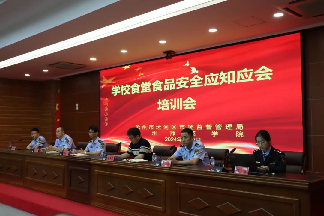 随后,沧州市运河区市场监督管理局餐饮科杨雪从食品安全的重要性和食堂食品安全管理的相关要求等方面对与会人员开展培训。