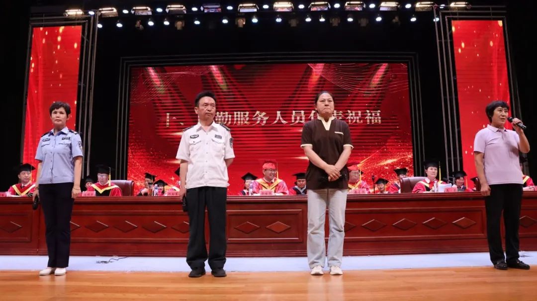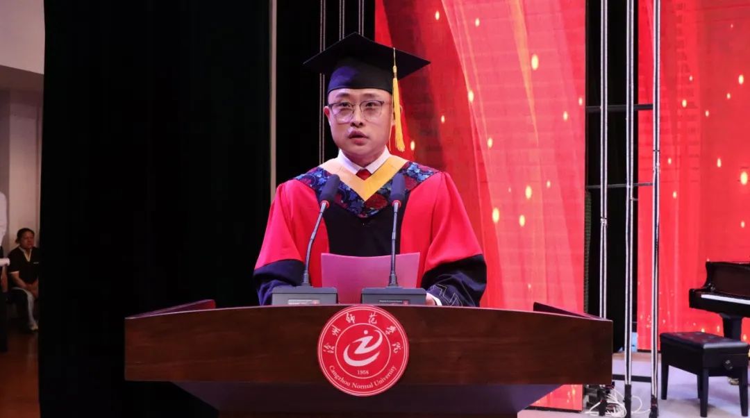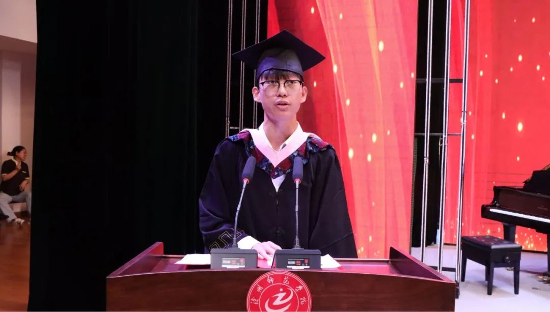 毕业生代表宋腾傲感恩发言:“再次感谢母校、老师们对我们的培养,祝福师弟师妹学业有成,青春如夏花般灿烂,祝福老师们身体健康,桃李满天下,祝福我们最爱的母校蒸蒸日上,再创辉煌!”
