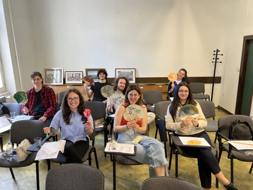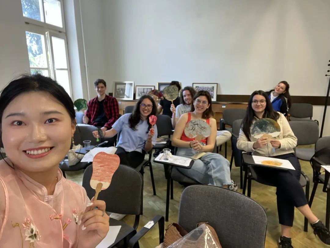在克罗地亚授课期间,孙梦桐应用翻转课堂、模拟情景等灵活多样的教学形式,开展丰富有趣的教学内容,为学生营造生动活泼的课堂氛围,积极调动学生学习汉语的热情和乐趣。先后带领学生们体验制作中国传统非遗文化漆扇和中国结,带领学生体验软笔书法的魅力,教学效果显著,并深受学生喜爱。学生们感受中国传统文化乐趣的同时,潜移默化受到中国文化魅力的熏陶。