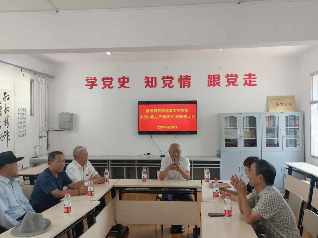各离退休教工党支部委员提前谋划、精心准备,安排了丰富多彩的活动。大合唱《没有共产党就没有新中国》《社会主义好》呈现了对党的崇高敬意和对社会主义制度的无限自豪;独唱《七律·长征》《我们的生活充满阳光》《我和我的祖国》回顾往昔艰辛岁月、畅享今天美好生活;诗朗诵《党旗颂》《开天辟地第一党》《我们伟大的党》《我爱我党》和原创诗作《我是一名老党员--“七一有感”》《七律·七一随笔》《七言排律·建党百年献词》等抒发了“感党恩、听党话、跟党走”的真挚情怀;原沧州师范学校校长李书声老人结合亲身经历生动讲党史、颂党恩,表达自己初心如磐的决心;现场表演的舞蹈、模特秀等节目充分展示了在党领导下幸福快乐的晚年生活。大家齐声高唱《国歌》,庆“七一”谈感受、讲心得,赞美伟大的党、歌颂伟大的新时代。