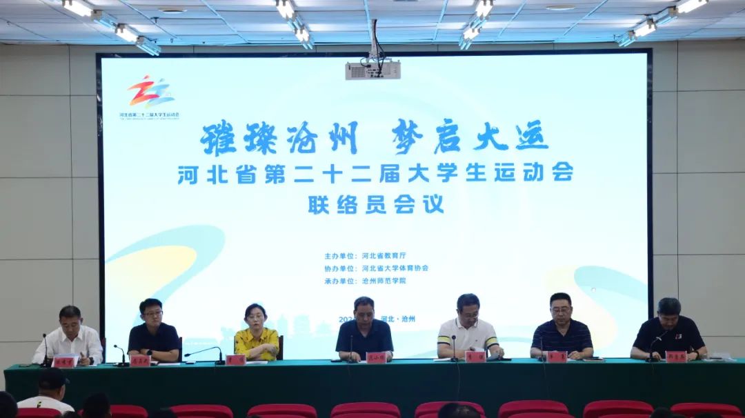 蝉鸣时节,河北省第二十二届大学生运动会于渤海之滨、运河之畔的沧州市举行。7月4日晚,第一次联络员会议在伟德学术报告厅召开。党委常委、副校长范小振出席并讲话。省内96所高校联络员老师、学校对接联络员志愿者参加会议。