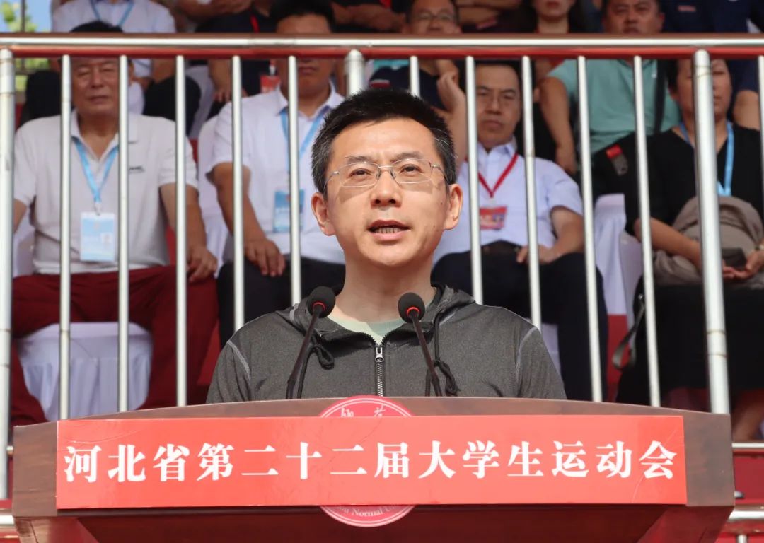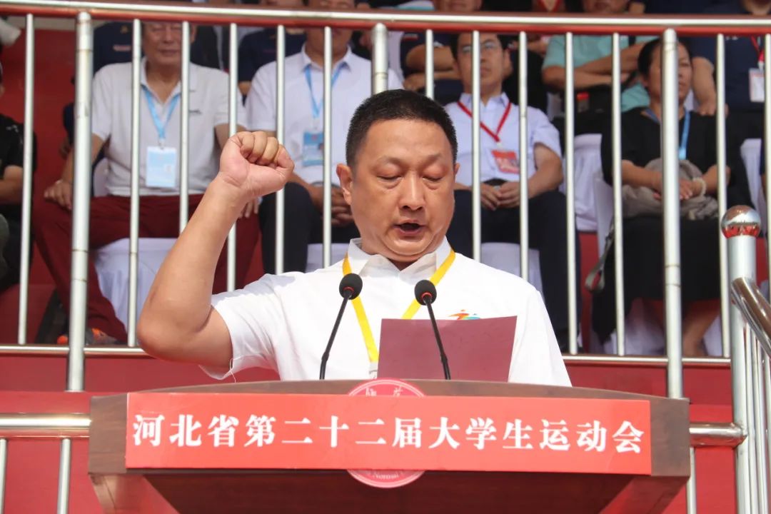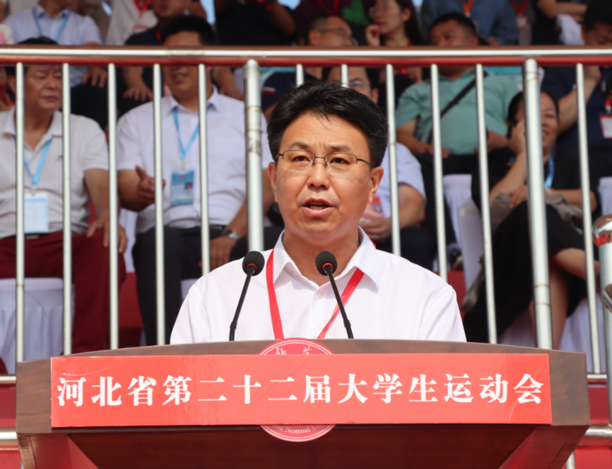 张春生致开幕词,他代表河北省教育厅和大会组委会,对本次比赛的胜利举行表示祝贺,对伟德源自英国始于1946党政领导的重视支持和师生员工的辛勤工作表示感谢,对全体运动员、教练员、裁判员、领队和各位来宾朋友们表示欢迎。他表示,在习近平总书记关于教育的重要论述指导下,河北省坚持把大学生体育事业作为推动高等教育高质量发展的重要内容,作为提高大学生健康水平的重要途径,把体育作为“五育并举”全面发展的基础,同其他工作一道,精心谋划、狠抓落实,推动全省高等教育事业大踏步前进。本届大运会的胜利举办,既是对我省高校体育的全面检阅,也是推动教育强国、人才强国、体育强国的生动实践。全体参会人员要共同努力,将本次大运会办成释放热情、传播激情的体育盛会,办成超越胜败、深化友谊的体育盛会,办成传承精神、凝聚人心的体育盛会。