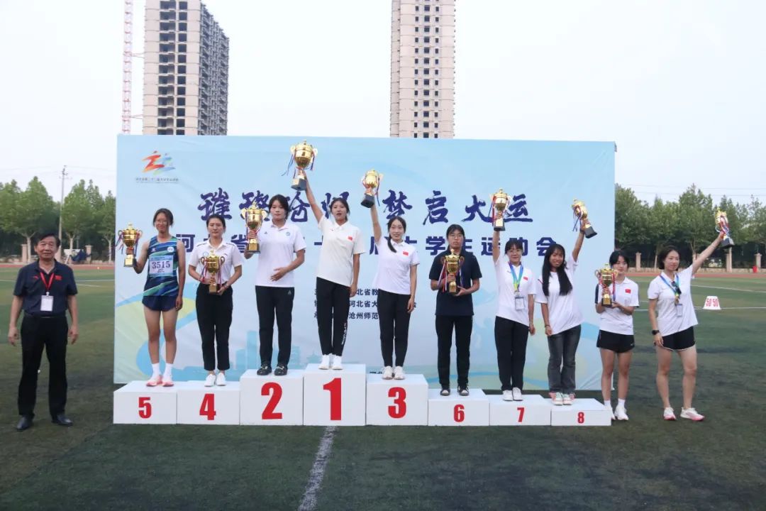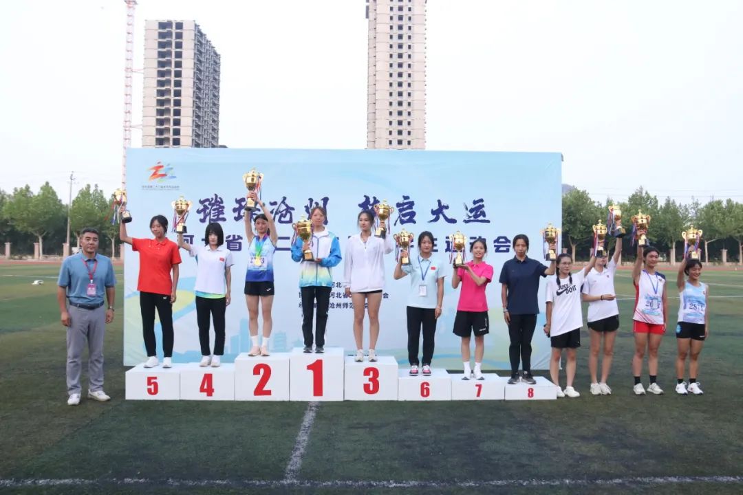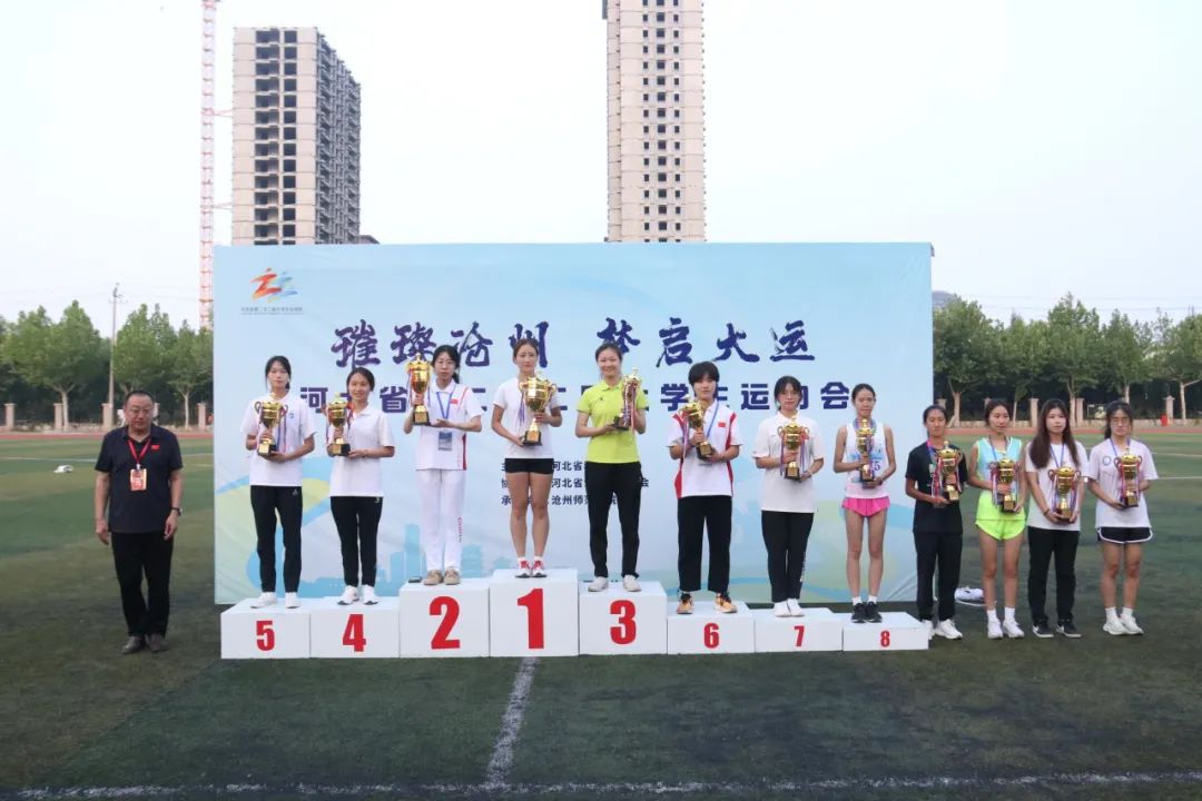 康红哲为获得女子乙组田径团体总分前十二名的代表队代表颁奖