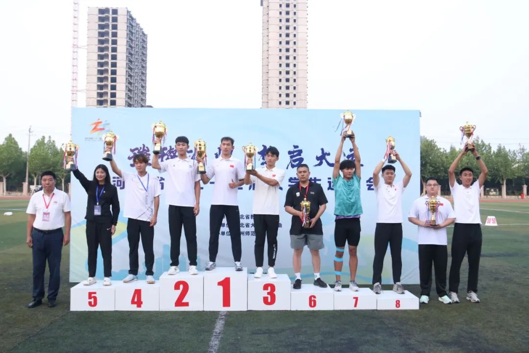 田磊为获得男子乙组田径团体总分前十二名的代表队代表颁奖