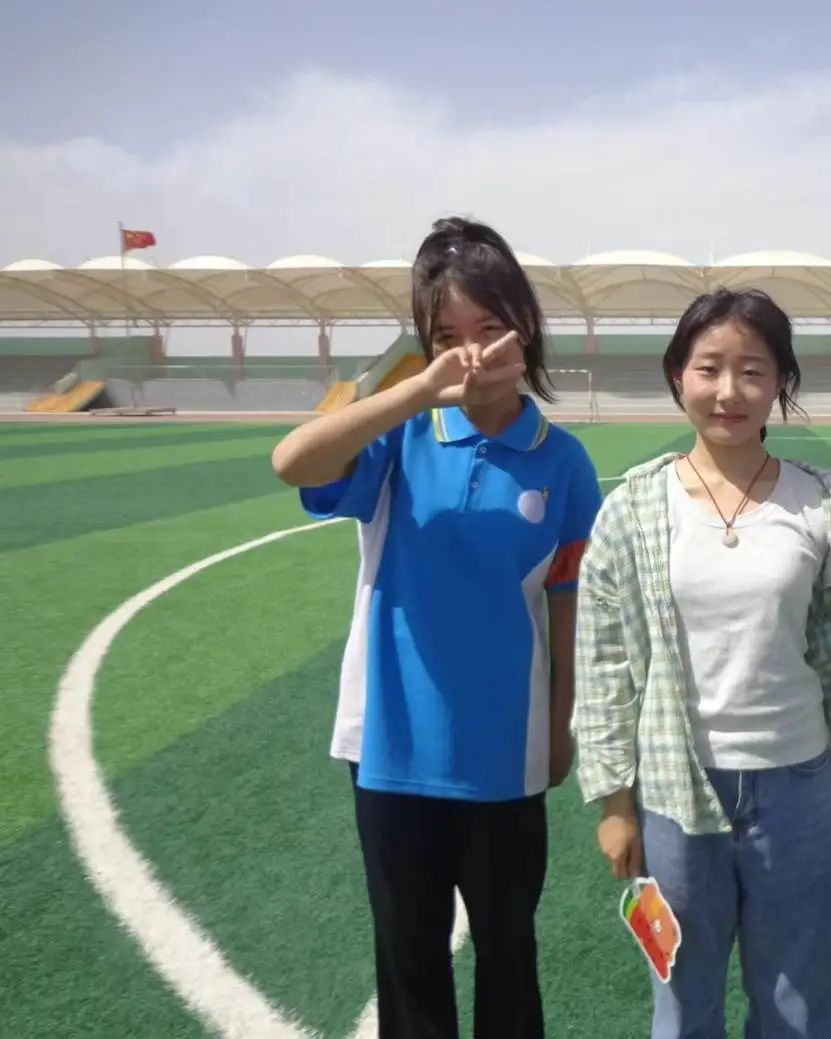 剧语情,河北石家庄人,文学院2021级汉语言文学三班学生,在2024年春季参加了援疆支教活动,在轮台县一中分校开展教学活动,一直担任七年级二班的英语教学,后期也担任一班、六班、八班的英语教学,同时进入七年级部,负责考勤,收发资料等。