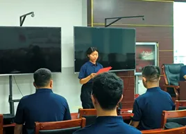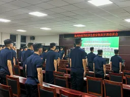 本次会议在庄严的国歌声中正式开始。随着国旗的缓缓升起,全体人员肃立,奏唱国歌。预备教官身着教官服,声音嘹亮,每个人心中都激荡着对祖国的热爱与自豪。