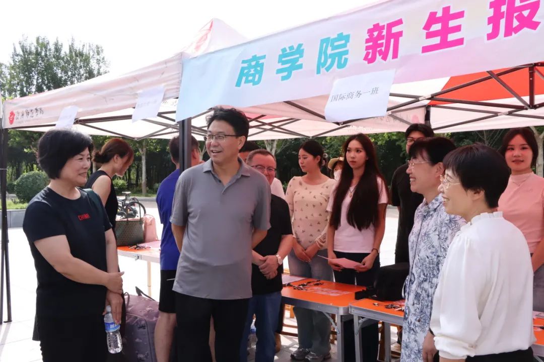 校领导云电军、高颖、范小振来到新生报到现场,慰问坚守一线的工作人员,与前来报到的新生及家长亲切交流,了解学生需求,为他们送上鼓励和祝福。