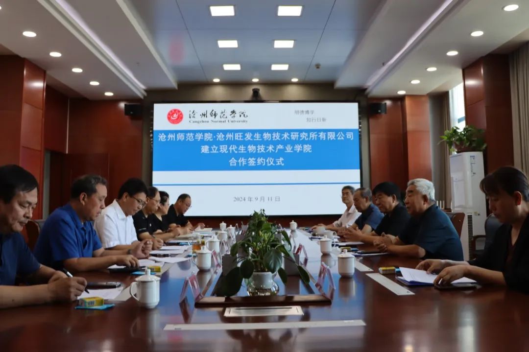 9月11日,在生命科学学院的积极推进下,伟德与沧州旺发生物技术研究所有限公司现代生物技术产业学院共建签约仪式在八楼会议室举行,开启校企合作的新篇章。校党委书记云电军、校长张占平,沧州旺发生物技术研究所有限公司总经理张连水及相关领导出席,校党委常委、副校长范小振主持。