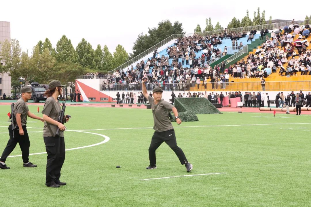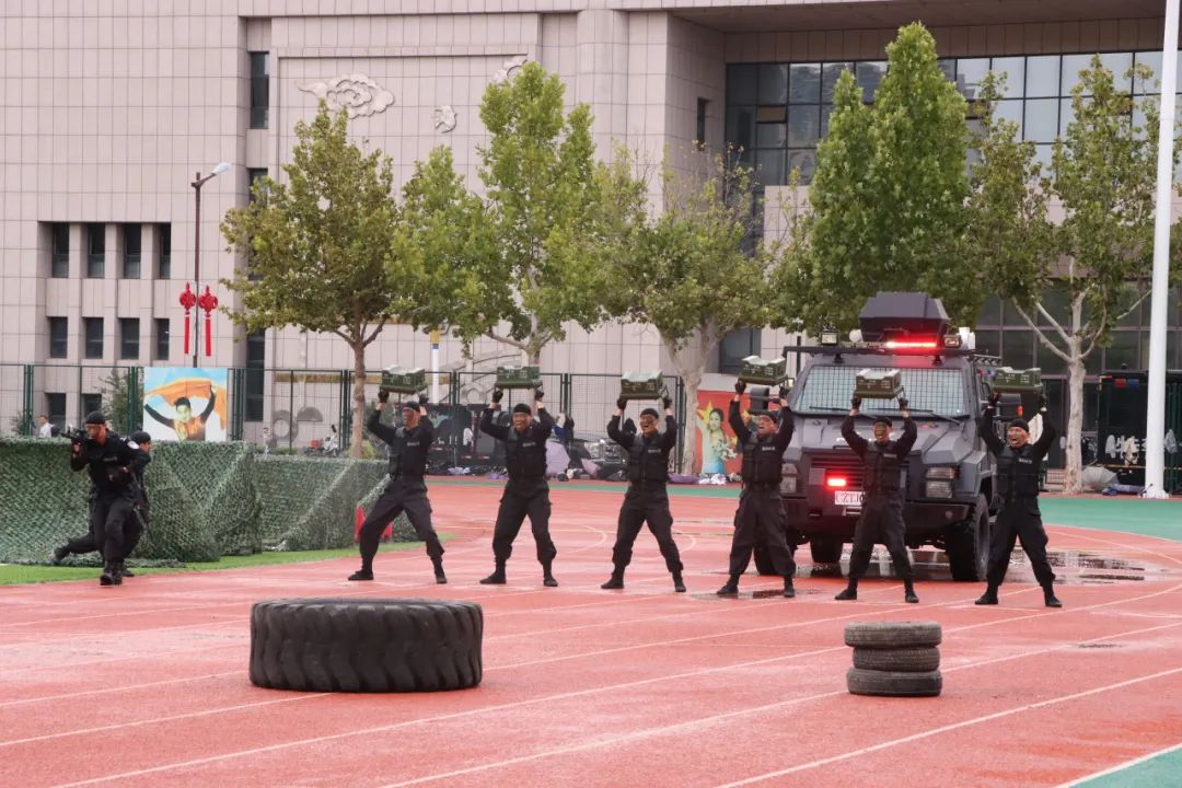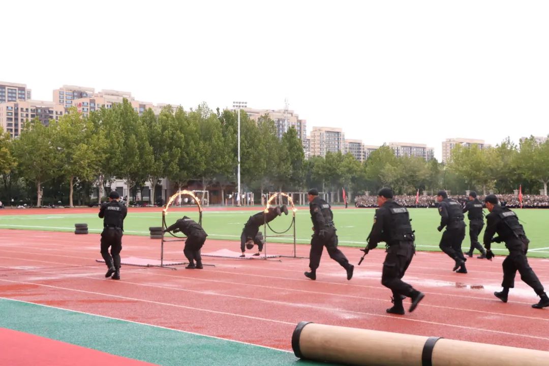 队列转换间尽显英姿,射击、匍匐,动作流畅如行云流水。同样精彩的,还有沧州市公安特警支队带来的特警训练科目展示。