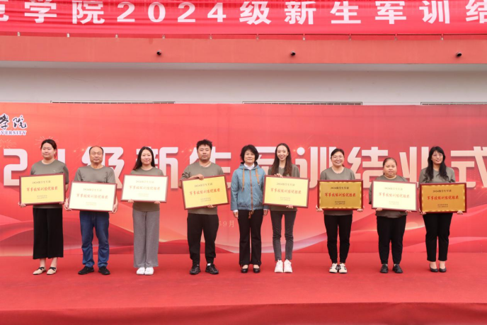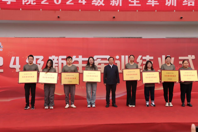 党委常委、副校长高颖为荣获2024级学生军训“军事技能训练优胜奖”的学院颁奖。