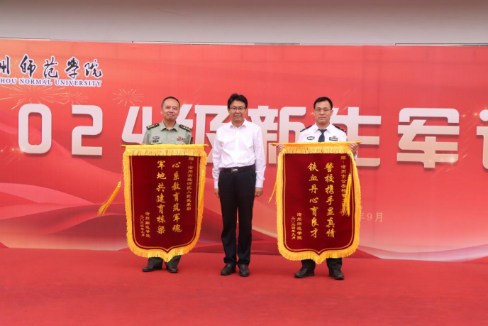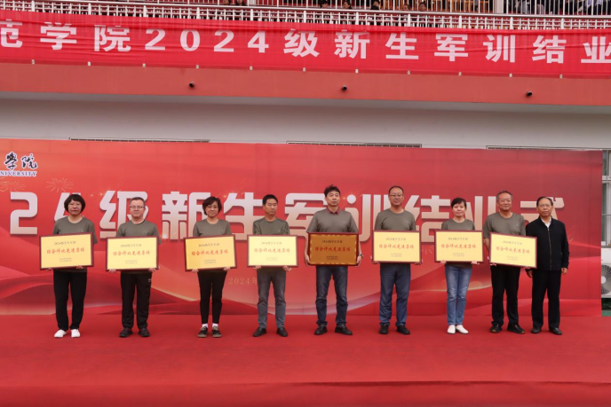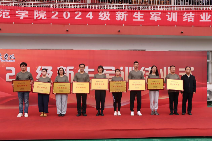 校长张占平为荣获2024级军训工作“综合评比先进集体”的学院和荣获学生军训工作“优秀组织奖”的学院颁奖。